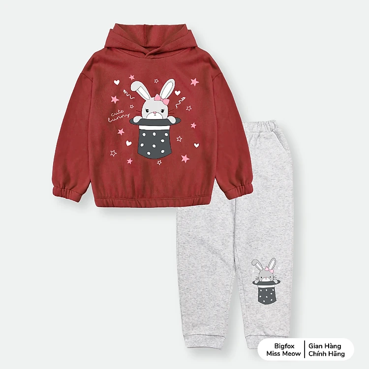 Bộ nỉ bông bé gái Bigfox Miss Meow size đại, bộ thu đông có mũ cho bé gái in Piza size trẻ em 3,4,5…11 tuổi