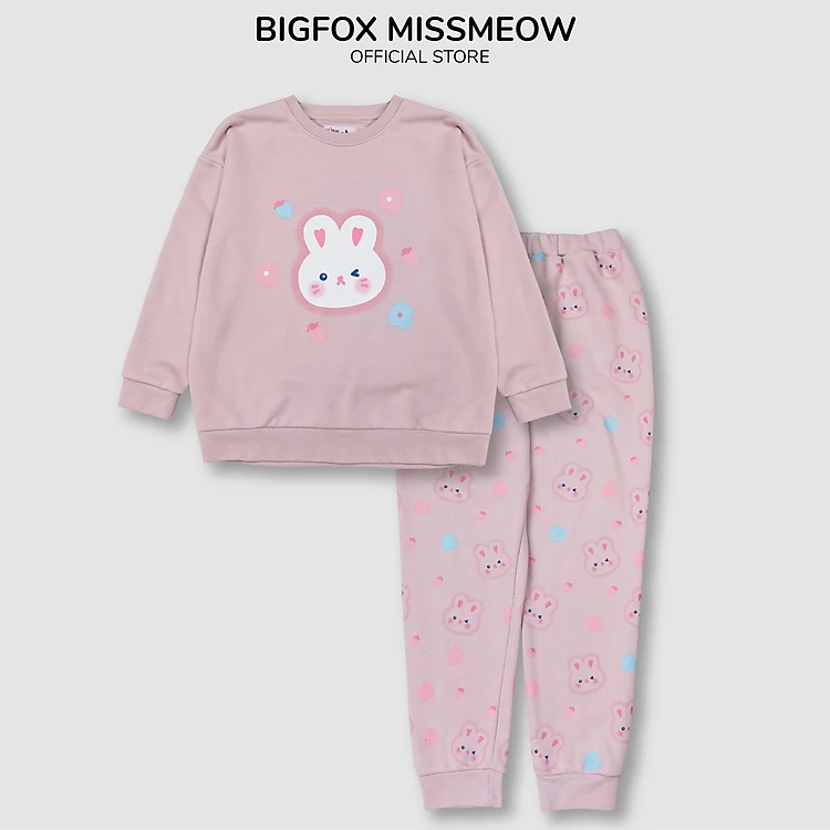 Bộ nỉ cho bé gái mùa thu thu đông size đại BIGFOX MISS MEOW quần áo trẻ em in thỏ phom Hàn cỡ 3,7,9,11 tuổi 40kg 2002