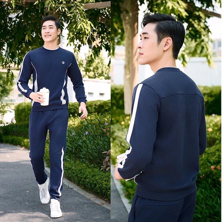 LAROMA Bộ Quần Áo Nỉ Thu Đông Cổ Chui Cho Nam | Sọc Đơn - Giữ Ấm - Vải Thơm - Kháng Khuẩn - Mềm Mại - Co Dãn