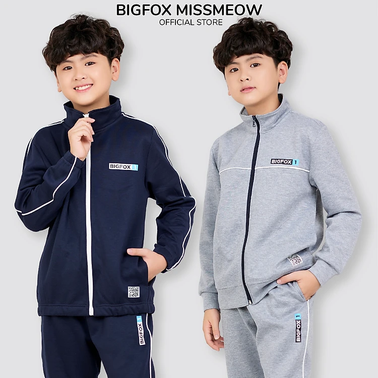 Bộ nỉ thể thao bé trai Bigfox Miss Meow size đại thu đông ấm áp style Hàn Quốc kéo khóa cho trẻ em 7-15 tuổi 30kg 50kg