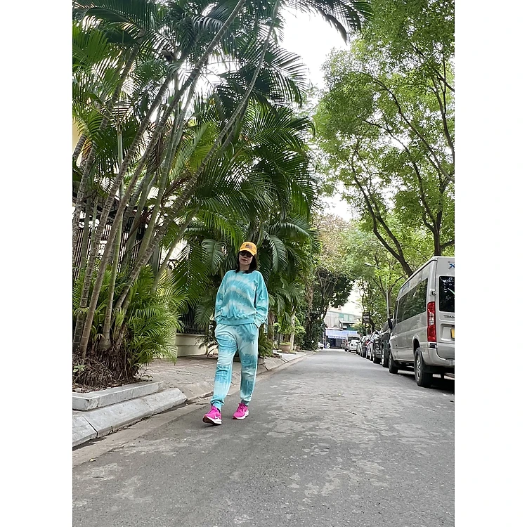 Bộ nỉ Victoria Secret màu xanh loang unisex mềm mịn, thoải mái cho vận động thể thao và phù hợp cả mặc nhà