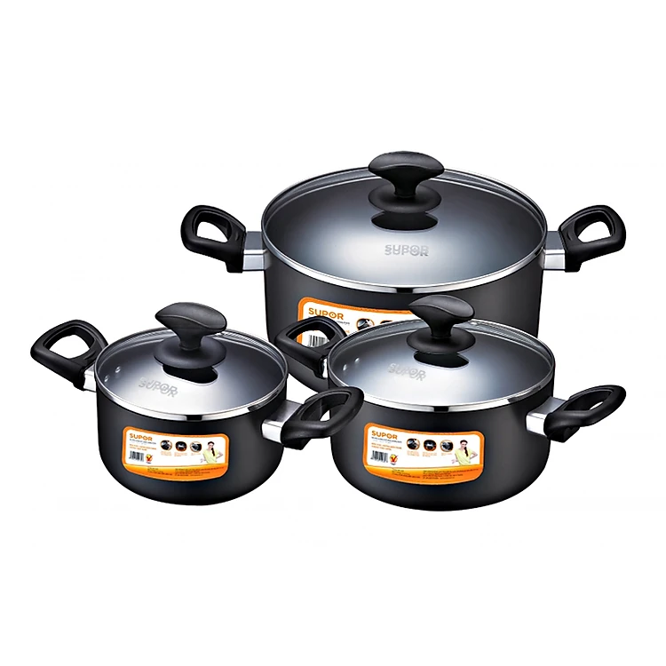 Bộ Nồi Canh Hợp Kim Nhôm Oxy Hóa Cứng 3 Cái Supor 16, 20, 24 cm (1.8, 3.2, 5.4L) - HT10015-T1