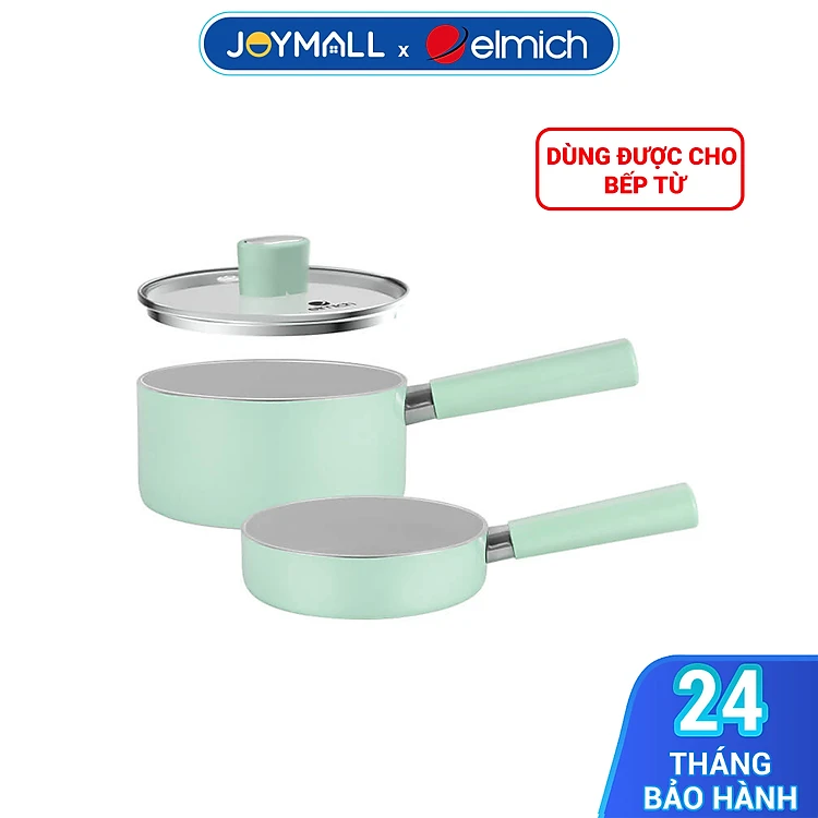 Bộ nồi chảo chống dính sứ Elmich Baby EL-1168, Hàng chính hãng, bắt từ nhanh, có thể dùng trong máy rửa bát - JoyMall