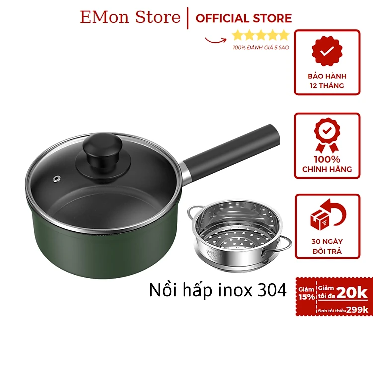 Bộ Nồi Chảo Đá Có Nắp Ăn Dặm Kèm Xửng Hấp Inox Chất Liệu Men Đá Chống Dính An Toàn Cho Bé - Nồi Nấu Bột Chống Dính , Quánh Chống Dính , Nồi Quấy Cháo Cho Bé Size 18cm Phù Hợp Với Nhiều Loại Bếp Ga, Bếp Từ