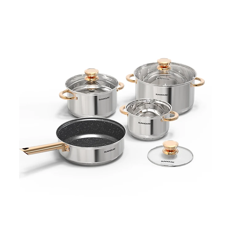 Bộ nồi chảo inox 5 đáy Sunhouse SHG789 - Hàng Chính Hãng