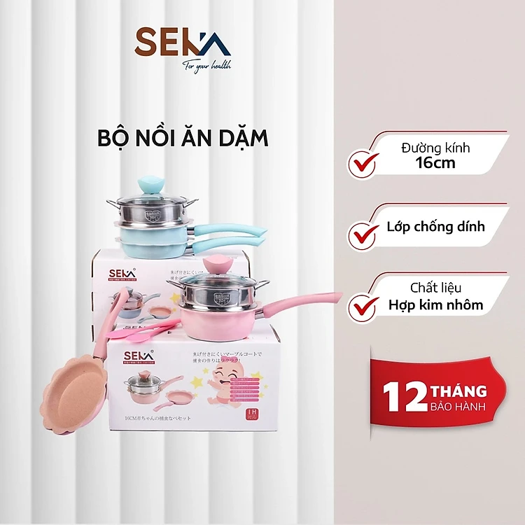 Bộ Nồi Chảo Nấu Ăn Dặm Cho Bé 3 Chi Tiết SEKA - Màu Ngẫu Nhiên - Hàng Chính Hãng