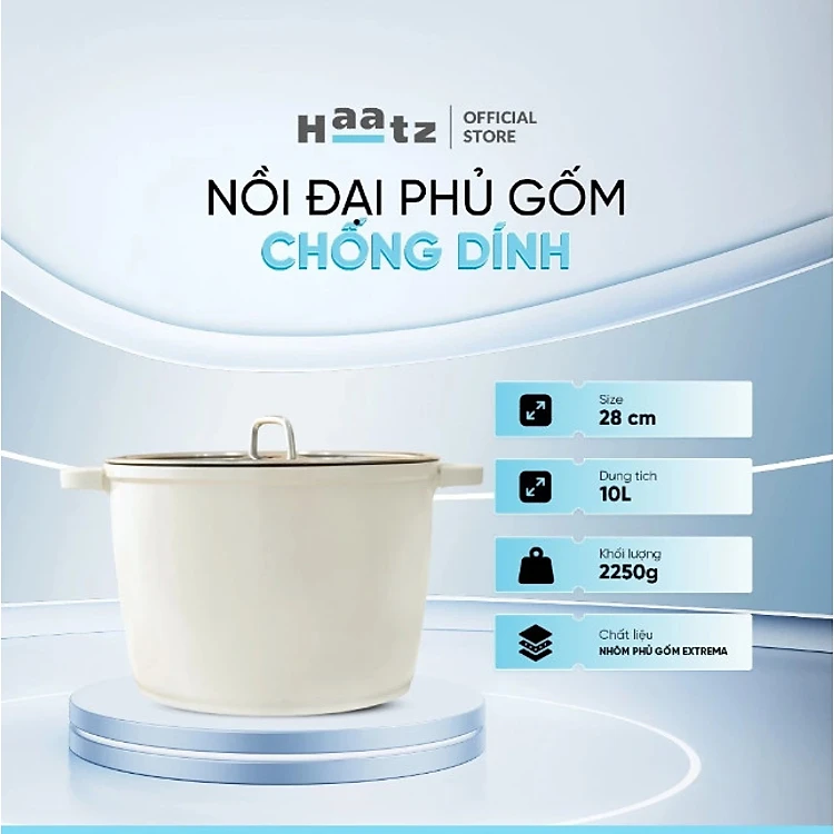 Bộ Nồi Chảo Phủ Gốm 5 Món Xtrema Chống Dính Haatz Hàn Quốc, Bền Bỉ, An Toàn Sức Khỏe, Hàng Chính hãng Bảo Hành 2 Năm