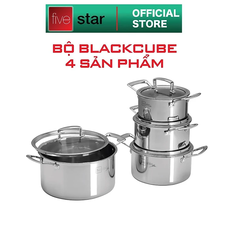 Bộ nồi chống dính 3 lớp đáy liền inox 304 BlackCube Fivestar Plus nắp kính công nghệ chống trầy xước , dùng được mọi bếp