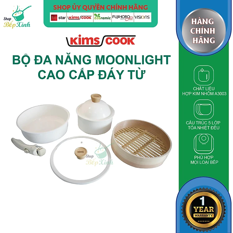 Bộ nồi đa năng tay rời Moonlight_Kimscook-Bộ Nồi Chảo Chống Dính Men Đá Kèm Xửng Hấp KimsCook Tay Cầm Tháo Rời