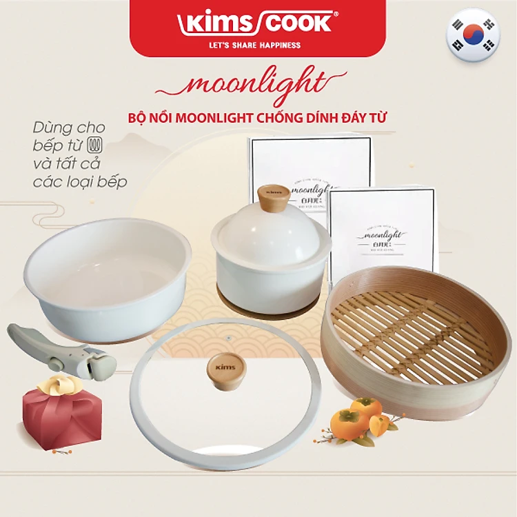 Bộ Nồi Đa Năng MOONLIGHT KimsCook F000026 Tay Cầm Rời - Dùng Cho Mọi Loại Bếp - Hàng Chính Hãng