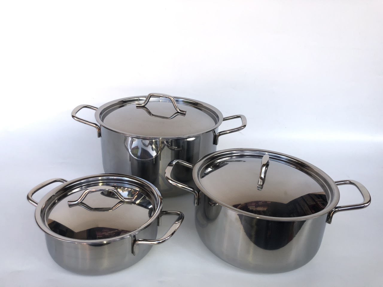 Bộ nồi inox 3 đáy Fivestar FSB3IN001 bộ nồi có 3 sản phẩm với kích cỡ lần lượt là 16 cm, 20 cm, 24 cm, tùy theo nhu cầu sử dụng, món ăn mà bạn chọn nồi nấu thích hợp. Nồi lớn nhất dùng để luộc gà nguyên con khoảng 1.5 kg, nồi trung dùng hầm thịt, nấu canh số lượng vừa phải, nồi nhỏ để nấu cháo cho bé hay làm món kho. Nồi làm bằng chất liệu inox 430 độ bền cao, ít bị oxy hoá, biến dạng, độ dày 0.6 mm. Tay cầm chắc chắn, di chuyển, tuy nhiên cần găng tay cách nhiệt khi di chuyển. Nắp nồi làm bằng inox dễ làm sạch. Đáy nồi 3 lớp (inox 430 - nhôm - inox 430). Lớp trong cùng và ngoài cùng bằng chất liệu inox 430 cao cấp, không bị oxi hóa, không bị ăn mòn bởi muối, hóa chất. Ở giữa là lớp nhôm có khả năng hấp thu nhiệt tốt, tỏa nhiệt đều, nấu chín thức ăn nhanh, tiết kiệm thời gian, năng lượng tối đa. Bộ nồi inox 3 đáy Fivestar FSB3IN001 sử dụng được trên bếp từ, bếp hồng ngoại và bếp gas.