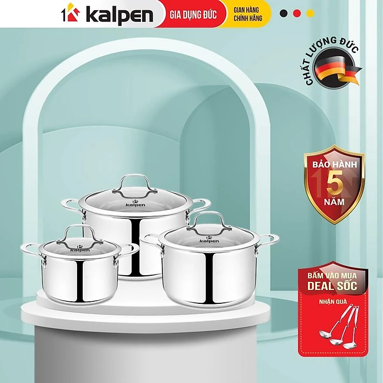 Bộ Nồi INOX 304 Cao Cấp 3 Lớp Liền Khối Kazler KZ1 Size 16-20-24cm Hàng Chính Hãng KALPEN-GIA DỤNG ĐỨC