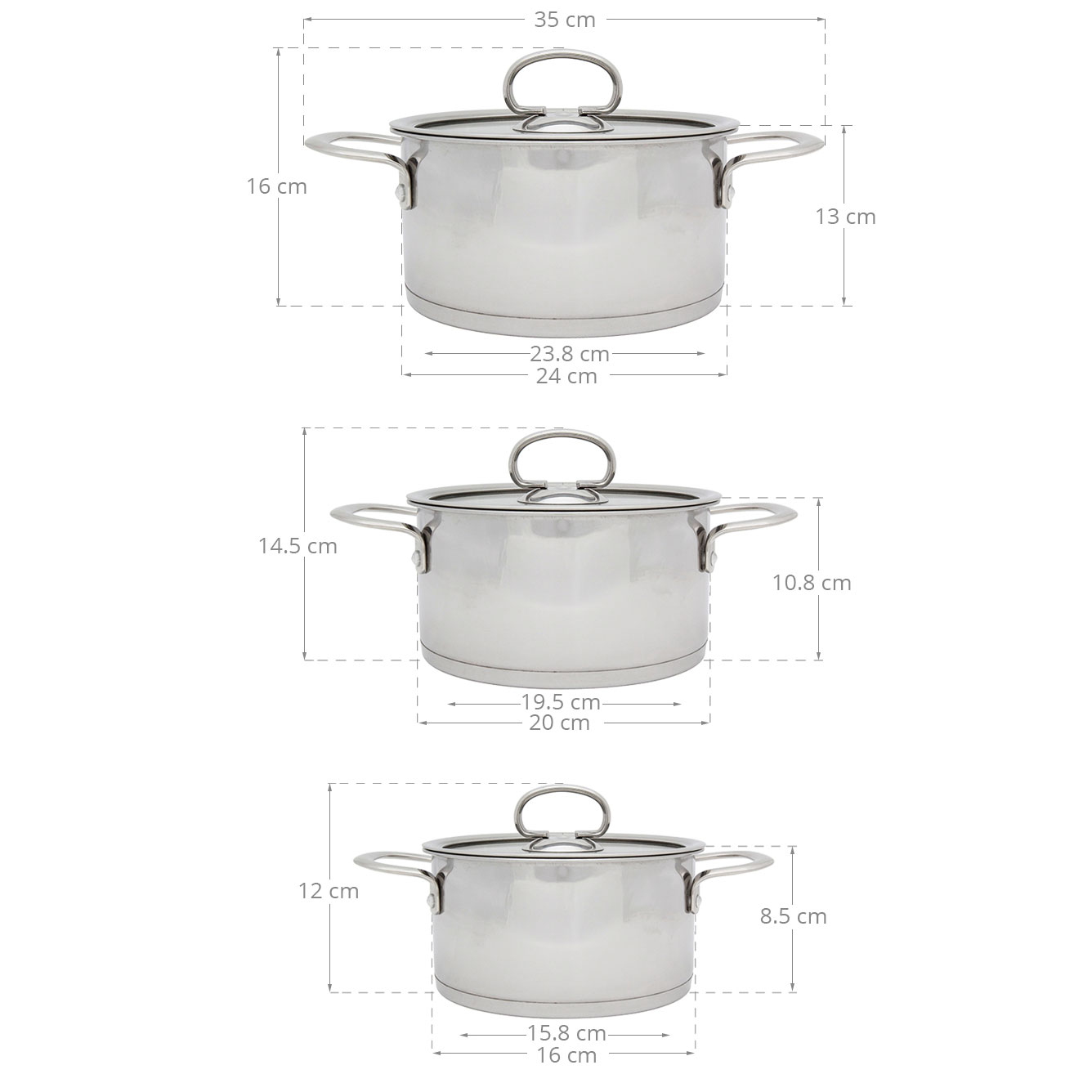 • Bộ sản phẩm gồm 3 chiếc nồi có kích thước khác nhau giúp bạn thuận tiện khi chế biến nhiều món ăn.