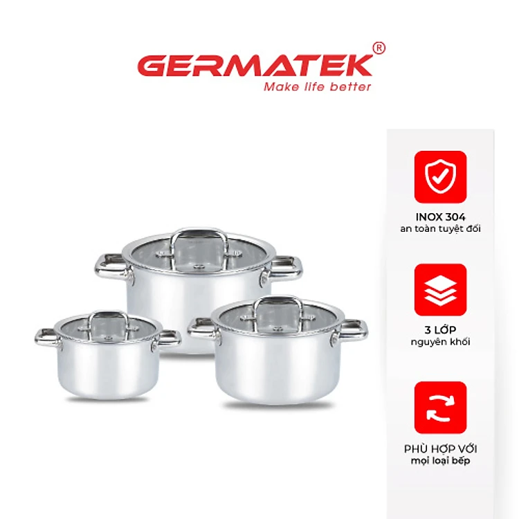 Bộ nồi Inox cao cấp nguyên khối Harmonie GE-0303 Size 18, 20, 24cm