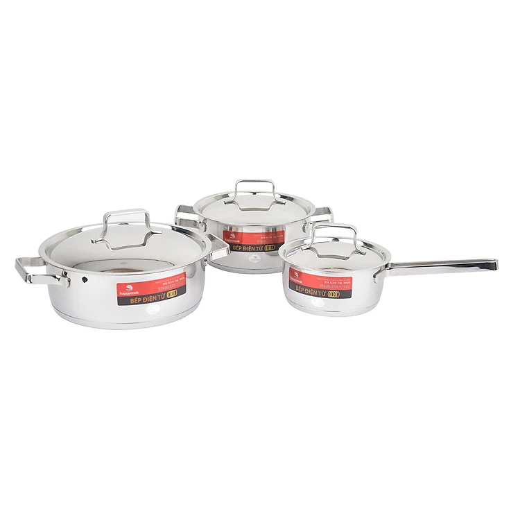 Bộ Nồi Inox Đáy Từ Cao Cấp 6 Món Happy Cook Milan HC-06ML (16, 20, 24 cm)