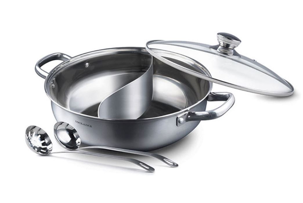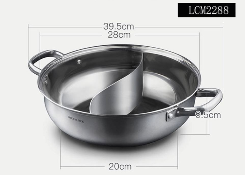 - Bộ Nồi Lẩu 2 Ngăn + 2 Vá Lock&Lock LCM2308 có khả năng làm nóng cực nhanh với chất liệu thép không gỉ giúp bạn tiết kiệm năng lượng khi chế biến món ăn.