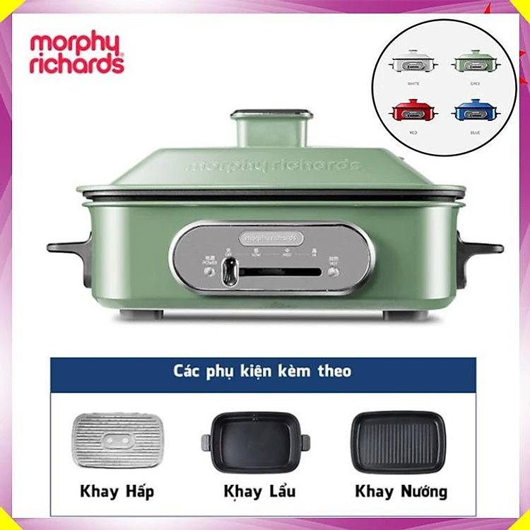 Bộ nồi lẩu nướng đa năng cao cấp Morphy Richards MR9088 hiện đang là món hàng được mọi người săn đón nhất hiện nay. Nồi được thiết kế vuông mang phong cách nghệ thuật, vô cùng trang nhã với 04 màu sắc cho bạn tùy chọn: Trắng ngà, Xanh biển, Đỏ, Xanh lá
