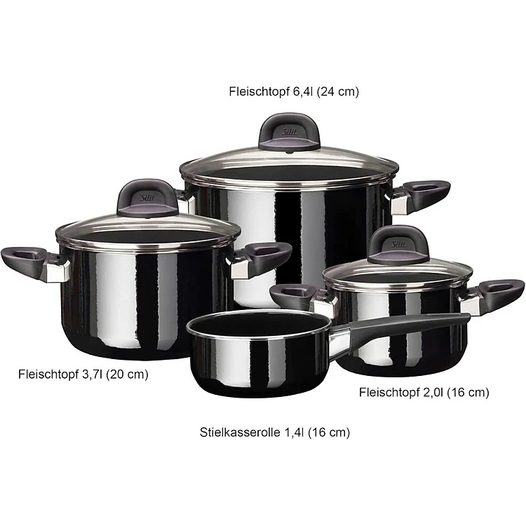 Bộ nồi Silit Modesto Line Induction 4-Piece, màu đen 3 NỒI 1 QUÁNH – MADE IN GERMANY Hàng chính hãng