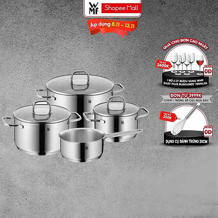 Bộ Nồi WMF INSPIRATION 4 Món Đáy Từ 3 Lớp Nguyên Khối Thép Không Gỉ Cromargan Size 24,20,16,16cm - 1730076380