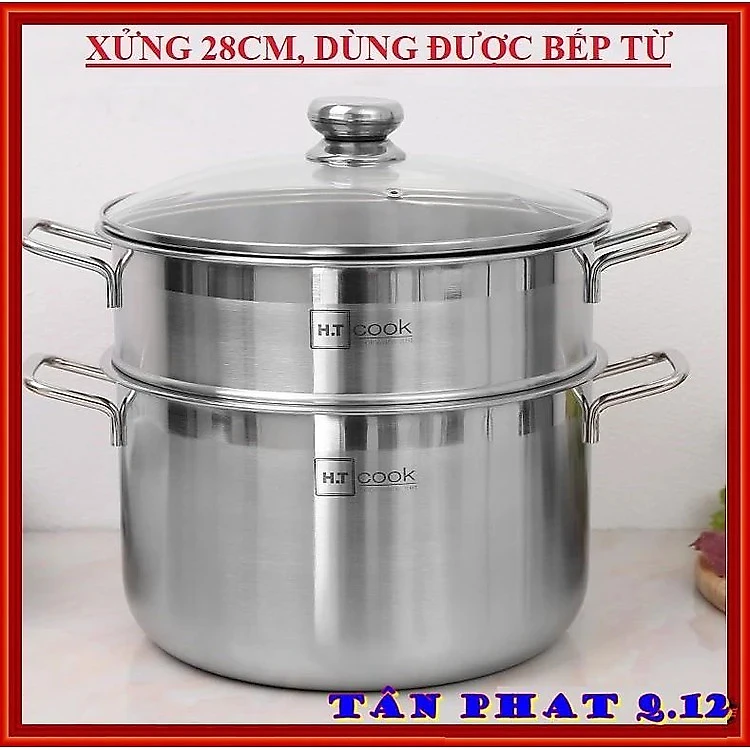 BỘ NỒI XỬNG HẤP INOX 28CM VÀ 30CM 2 TẦNG VUNG KÍNH CƯỜNG LỰC