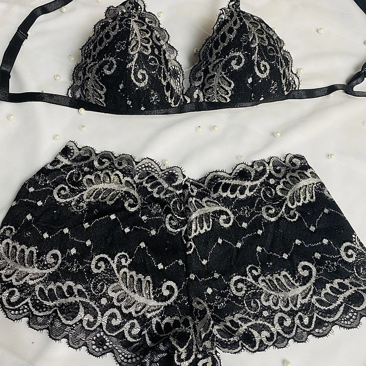 Bộ Nội Y Thiết Kế Ren Cao Cấp Đen Trắng Có Mút Quần Đùi
