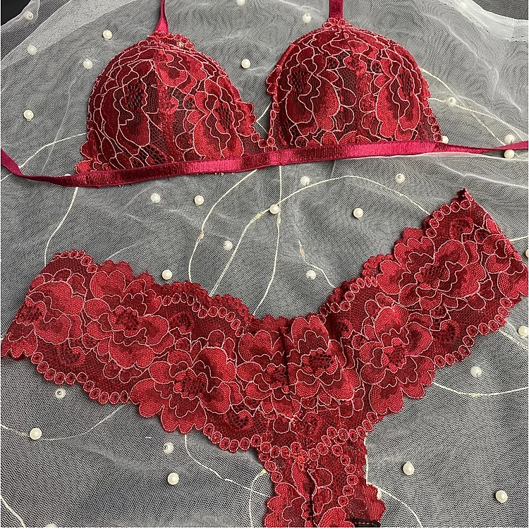 Bộ Nội Y Thiết Kế Ren Cao Cấp Đỏ Đô Có Mút Quần Chữ Y