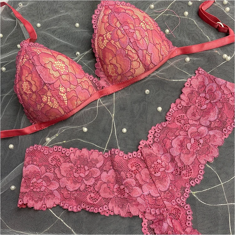Bộ Nội Y Thiết Kế Ren Cao Cấp Hồng San Hô Có Mút Quần Chữ Y