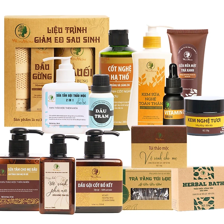 Bộ ở cữ đầy đủ Wonmom ( Tắm gội - dưỡng trắng mặt - body - giảm eo - xông hơi - lợi sữa - bé