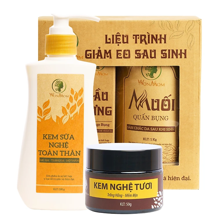 Bộ ở cữ siêu tiết kiệm Wonmom ( liệu trình giảm eo + kem nghệ tươi + kem sữa nghệ body )