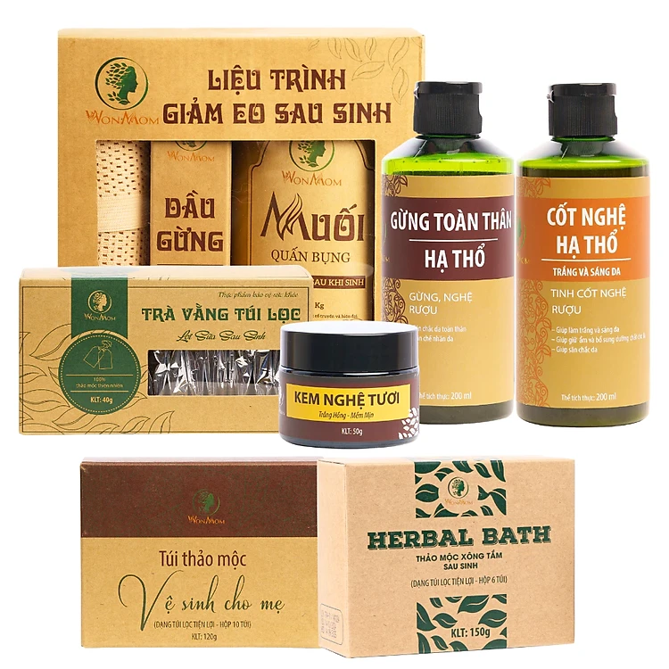 Bộ ở cữ siêu tiết kiệm Wonmom loại 2 ( Dưỡng da mặt - body - giảm eo - xông hơi - lợi sữa )