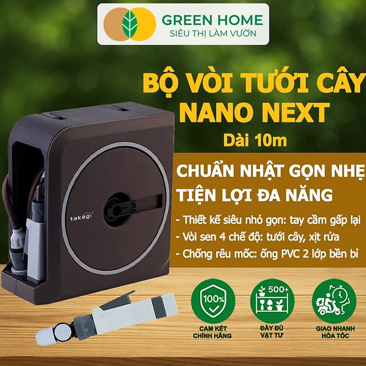 Bộ ống tưới cây Takagi Nano Next GreenHome, Dài 10m, Thiết Kế W-Reel Độc Quyền, Vòi Phun 4 Chế Độ, Gọn Nhẹ