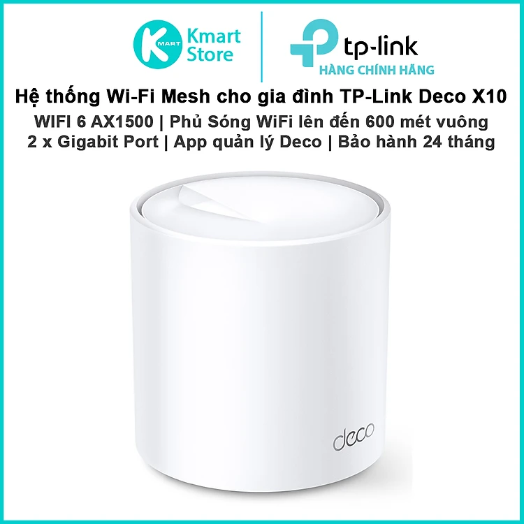 Bộ phát sóng Mesh WIFI 6 TP-Link Deco X10 | WIFI 6 AX1500 2 băng tần | Vùng phủ sóng rộng | Bảo hành 2 năm | Hàng Chính Hãng