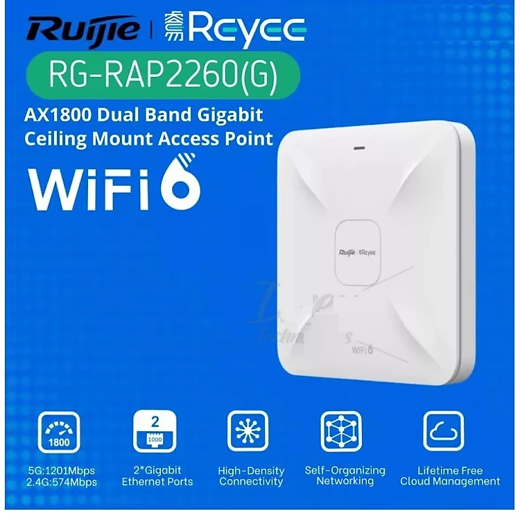 Bộ phát WiFi 6 Ruijie RG-RAP2260(G) Chuẩn AX tốc độ 3200Mbps - Hàng Chính Hãng