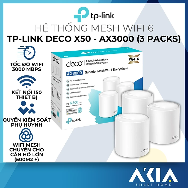Bộ Phát Wifi Mesh TP-Link Deco X50 Chuẩn WiFi 6 AX3000 - HÀNG CHÍNH HÃNG