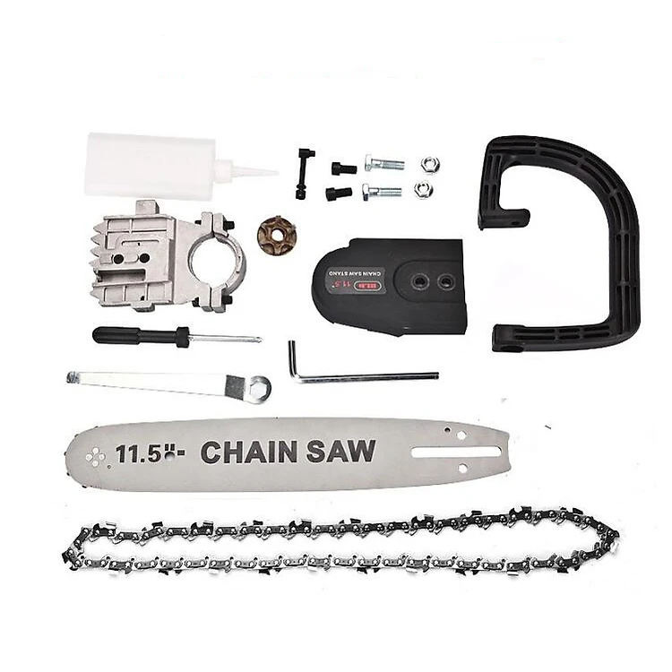 Bộ phụ kiện chuyển máy cắt mài cầm tay thành máy cưa xích đa năng giúp bạn chuyển đổi một cách nhanh chóng từ chiếc máy cắt thông thường sang máy cưa xích, bạn có thể tiết kiệm thời gian và công sức một cách tối đa khi cưa các vật có kích thước lớn.