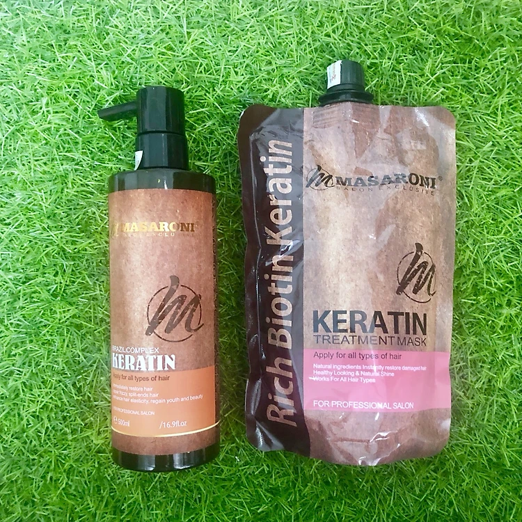 Chú ý: Keratin MASARONI dạng chai là dạng gel mật ong. Đậm đặc nên cần pha loãng với nước, nếu bạn không pha nước mà sử dụng trực tiết sẽ bị bết tóc.