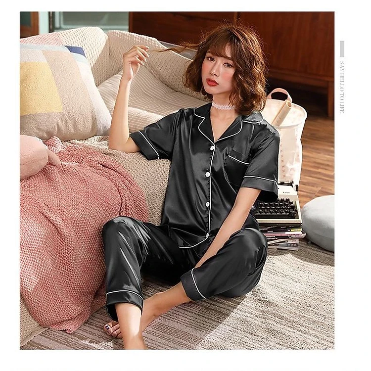 Bộ pijama nữ lụa bận nhà phong cách hàn quốc đơn giản nhiều màu BK05