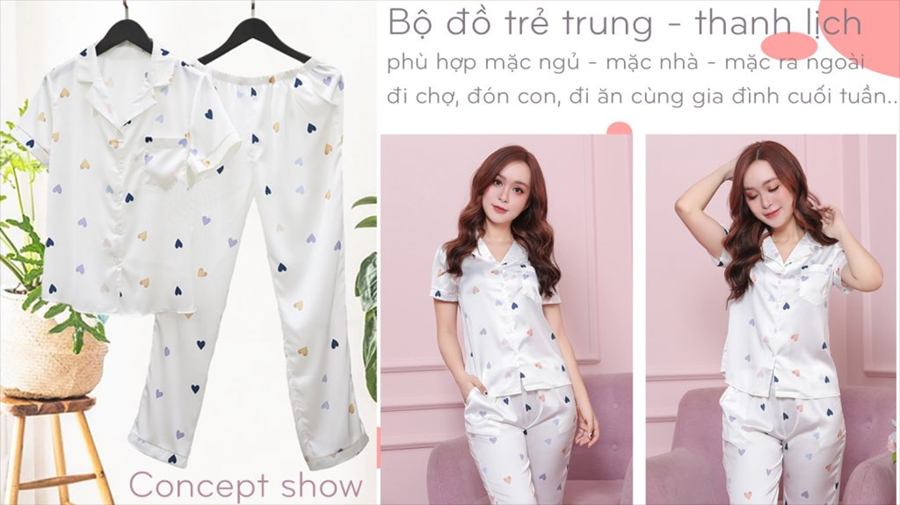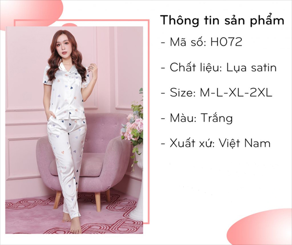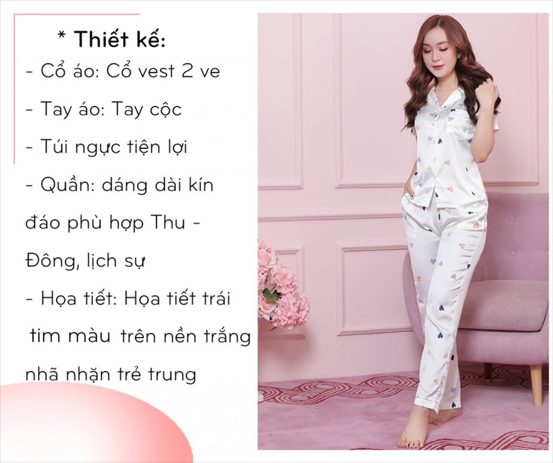 BỘ PIJAMA LỤA HỌA TIẾT TRÁI TIM H072