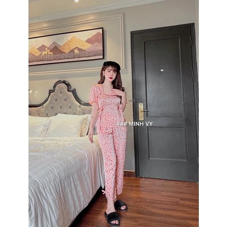 Bộ Pijama Tay Rơi Cổ Vuông Lụa Cao Cấp Họa Tiết Đẹp Mềm Mượt_Minh Vy