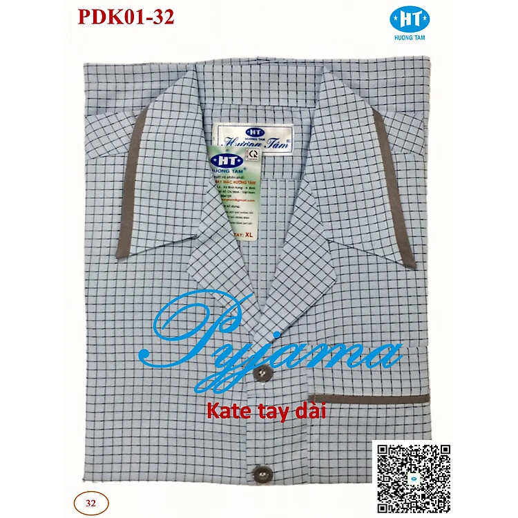 Bộ Pyjama HUONGTAM Kate tay dài nam cao cấp(PDK01N10). Chất liệu Kate loại tốt: mềm mại, thoáng mát, không phai màu.