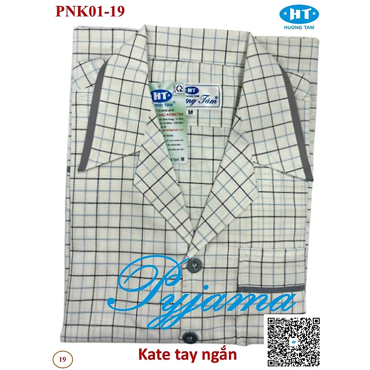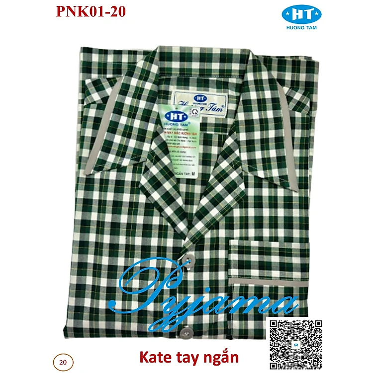 Bộ Pyjama HUONGTAM Kate tay ngắn nam cao cấp(PNK02N14). Chất liệu Kate loại tốt: mềm mại, thoáng mát, không phai màu.