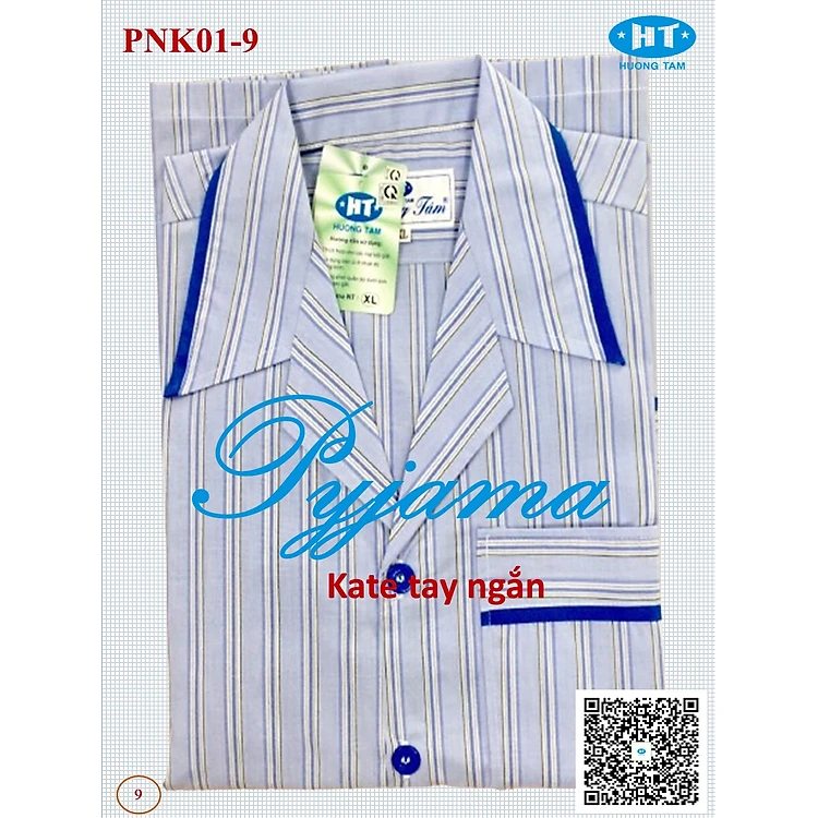 Bộ Pyjama HUONGTAM Kate tay ngắn nam cao cấp(PNK02N3). Chất liệu Kate loại tốt: mềm mại, thoáng mát, không phai màu.