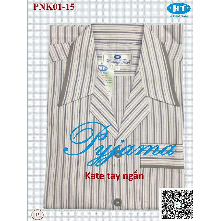 Bộ Pyjama HUONGTAM Kate tay ngắn nam cao cấp(PNK02N9). Chất liệu Kate loại tốt: mềm mại, thoáng mát, không phai màu.