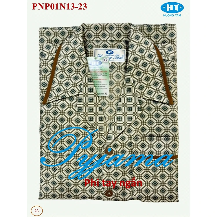 Bộ Pyjama HUONGTAM Phi bóng tay ngắn nam cao cấp(PNP02N13). Chất liệu vải polyester mềm mại, thoáng mát, không phai màu.