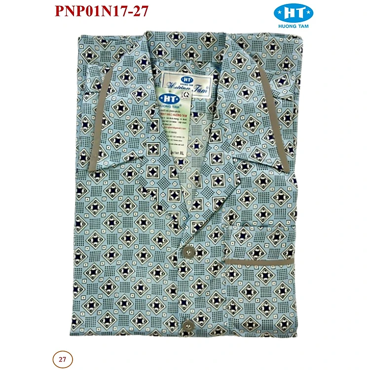 Bộ Pyjama HUONGTAM Phi bóng tay ngắn nam cao cấp(PNP02N17). Chất liệu vải polyester mềm mại, thoáng mát, không phai màu.