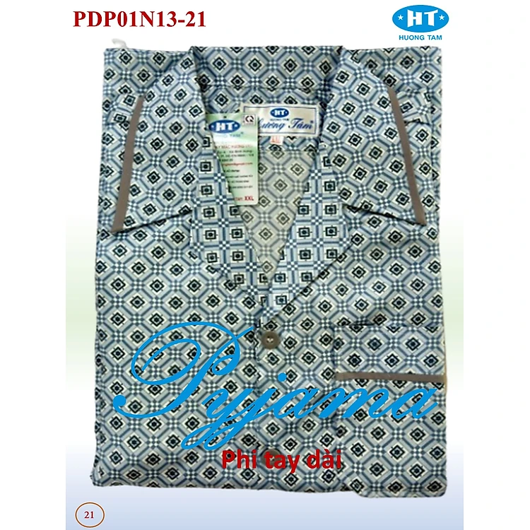 Bộ Pyjama HUONGTAM Phi tay dài nam cao cấp(PDP01N13). Chất liệu vải polyester mềm mại, thoáng mát, không phai màu.