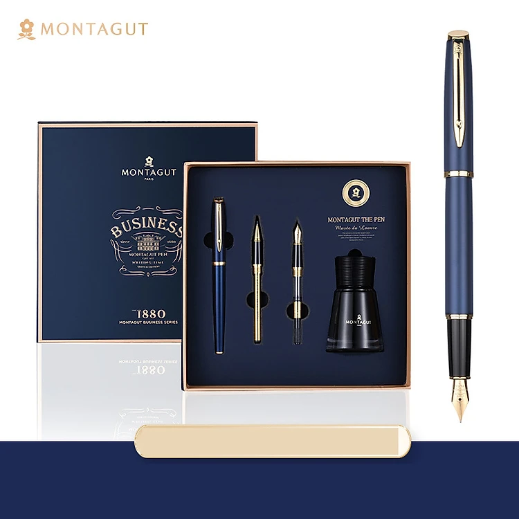 Bộ quà tặng bút ký Montagut Pháp MIỄN PHÍ KHẮC TÊN M2007 bút kí mực xanh tặng thiệp ghi chú B216