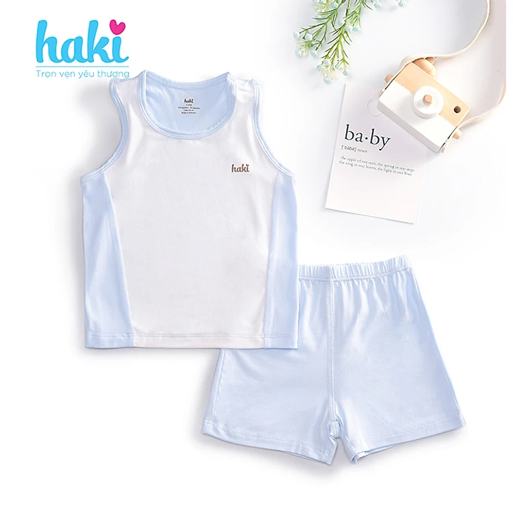 Bộ quần áo 3 lỗ cho bé phối màu vải sợi tre siêu mềm mịn mát lạnh cao cấp - Bộ sát nách cho bé Haki từ 3 tháng đến 3 tuổi (4kg-15kg) BB005