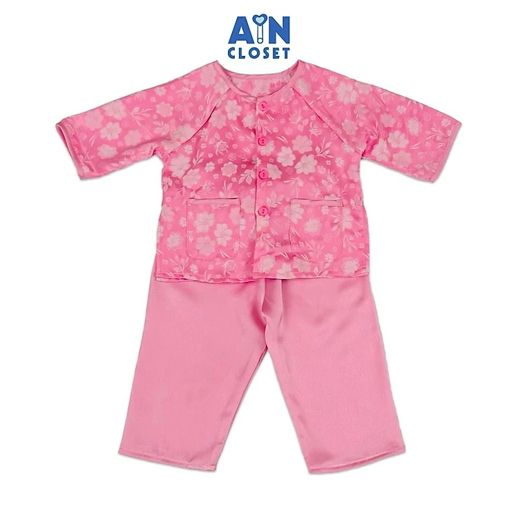 Bộ quần áo Bà ba Dài áo tay lỡ bé gái họa tiết Hoa Mộc Lan Hồng Gấm lụa - AICDBGV7UCFL - AIN Closet