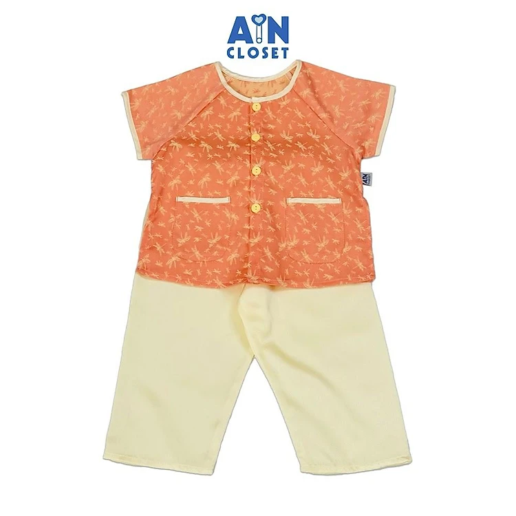 Bộ quần áo Bà Ba Dài tay ngắn bé gái họa tiết Chuồn Chuồn Cam gấm lụa - AICDBGYTG2O1 - AIN Closet
